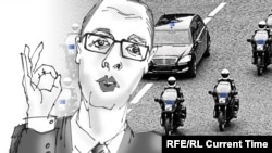 От Новых Петровцев, где с семьей живет премьер-министр – там, кстати, располагается и резиденция бывшего президента Украины Виктора Януковича, "Межигорье" – до здания Кабинета министров журналисты насчитали четыре перекрестка, на которых работники ГАИ выключали светофоры и перекрывали движение транспорта, чтобы Яценюк беспрепятственно добрался до рабочего места.
