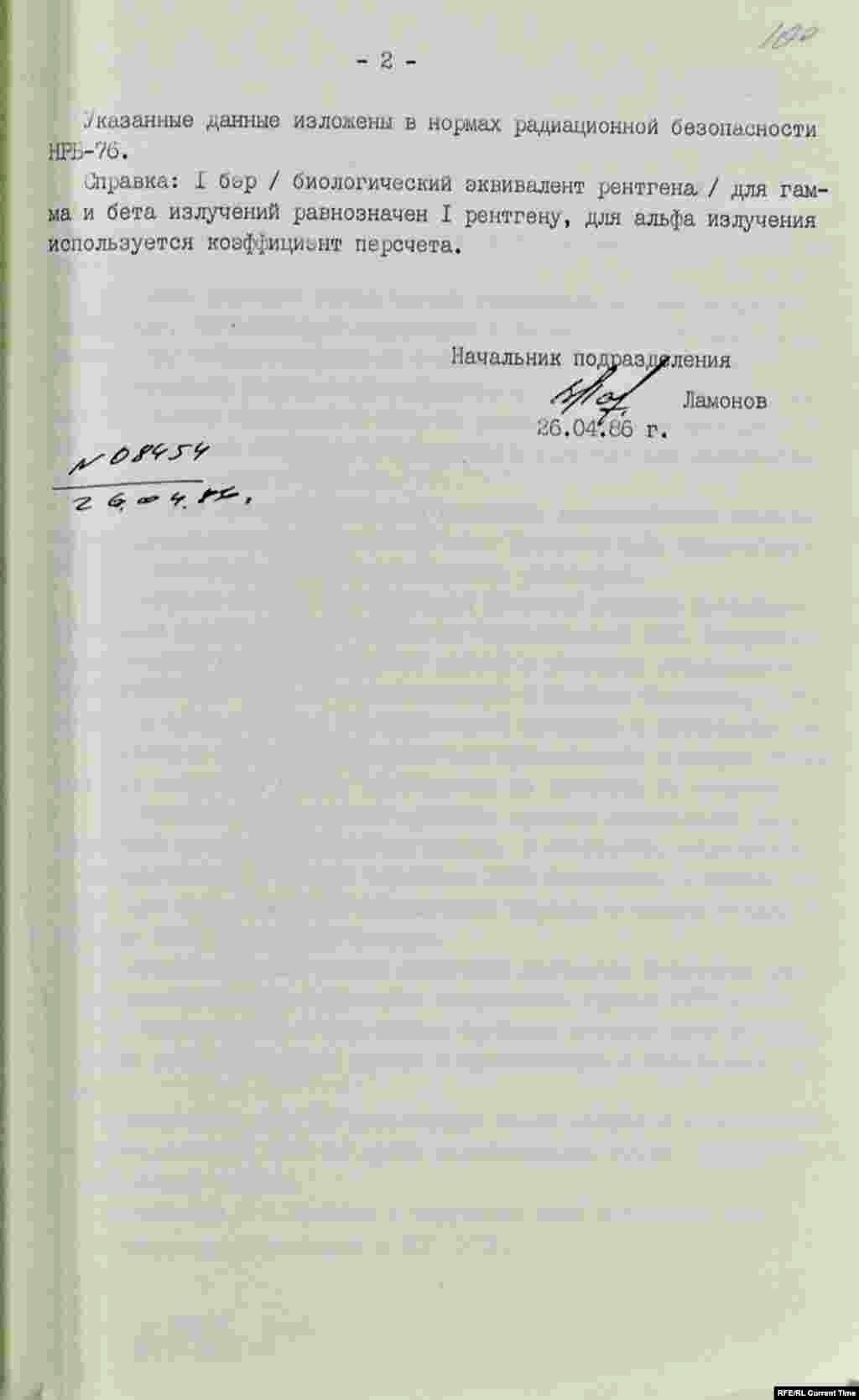 26 апреля 1984 года, в день аварии на ЧАЭС, появилась первая справка о допустимом уроне облучения для разных категорий населения и персонала