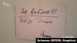 Радио Свобода удалось поговорить с бывшим украинским военнослужащим. Он рассказал, что его допрос в школе в Катюжанке проводил военный по прозвищу Немец. Журналисты заметили эту надпись на дверях одного из школьных кабинетов: