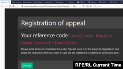 Далее посетителю предлагается зайти на сайт приемной в зоне .onion, ввести проверочный код (чтобы исключить обращения ботов – программ, имитирующих действия людей) и скопировать пять случайных слов на английском языке: они будут проверочной фразой для дальнейшего взаимодействия со спецслужбой. Так, корреспонденту Настоящего Времени выпали слова unsolved-feeble-heap-smooth-feminist (неразгаданная-слабая-куча-гладкая-феминистка).