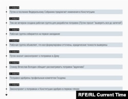 Специальная рабочая группа для разработки поправок к Конституции на основе предложений президента, была создана сразу после его обращения – вечером 15 января. Через два дня она собралась на первое заседание, а уже через день объявила, что текст поправок полностью готов. Фактически текст изменений в 14 статей Конституции РФ разработали и утвердили за один рабочий день. 20 января Владимир Путин внес законопроект о поправках в Думу, и уже 23-го числа он был одобрен в первом чтении. Второе чтение запланировано на февраль. Пресс-секретарь президента РФ Дмитрий Песков заявил, что «четких дат в Кремле пока не ставят, но и в долгий ящик ничего откладывать не будут».